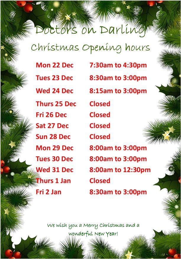Doctors on Darling is a privately billing practice open 6 days a week Monday to Saturday. We are closed on Sundays and Public Holidays.